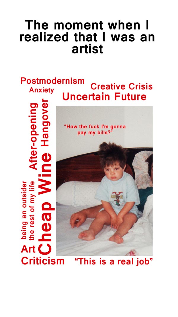 Fui reflectindo a partir de mim mesmo, e posicionei-me ironicamente como um mau artista: não estava dentro do estabelecido, não sou representado por uma galeria, não ganho prémios importantes... o que não quer dizer que eu não seja artista.